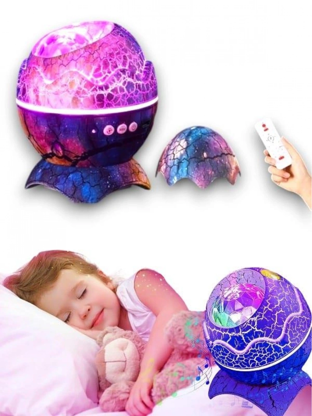 【Dinozor yumurta gece lambası projektör】 : Bulutsu'nun ve yıldız ışıklarının kombinasyonu tek başına veya kombinasyon halinde (14 renge kadar) açılabilir ve nebula akışının projeksiyonu rahatlatıcı bir atmosfer, 4 hız ve parlaklık yaratır. Yüksek çözünürlüklü yıldızlı galaksi duvar ve tavana yansıtılabilir, galakside seyahat ediyormuş gibi hissedeceksinizDinamik ritmli 【Bluetooth müzik hoparlörü/oyuncu 】 : Cihazı bir müzik çalara dönüştürmek için Bluetooth üzerinden bağladıktan sonra en sevdiğiniz müziği çalın. Işıklar müzik ritmini takip ederek yanıp sönecek ve dans edecek. Çocuklarımızla küçük bir müzik partisi açabiliriz【Beyaz gürültü projektörü Light】 19 yatıştırıcı sesler ve sıcak gece lambası dinlendirici gecelerde sizi sakinleştirecek, güzel yıldızlı gökyüzünde iyi bir şekilde düşmenize yardımcı olmak için yatmadan önce istediğiniz birini seçebilirsiniz.【Uzaktan kumanda ve otomatik kapanma zamanı】 : Renk aydınlatması, projeksiyon modu, parlaklık, hız, müzik seçimi, ses seviyesi ve zamanlayıcıyı kontrol etmenizi sağlayan bir uzaktan kumanda alırsınız. Otomatik kapanma zamanlayıcısı 1 veya 2 saate ayarlanabilir ve zamanlayıcıyı ayarlamayı unutursa, cihaz 4 saat sonra otomatik olarak kapanacaktır. Uzaktan kumanda ve otomatik zamanlayıcı kullanımı kolaydır ve belirli bir zamanda kapatmak için bir zamanlayıcı ayarlamaya çalışırken esneklik sağlar【İdeal hediye 】 : Desteğiniz için teşekkür ederiz, size kişiselleştirilmiş ve kaliteli ürünler sunmaya devam ediyoruz. Dinozor yumurtası dış tasarım, 3D renk boyama, artı serin kuzey ışıkları etkisi, sadece odanızı iyi dekore edemez ama aynı zamanda aileniz veya arkadaşlarınız için bir hediye olabilir.Paket detayları.1 * dinozor yumurtaları projektör1 * uzaktan kumanda1 * USB kablosu