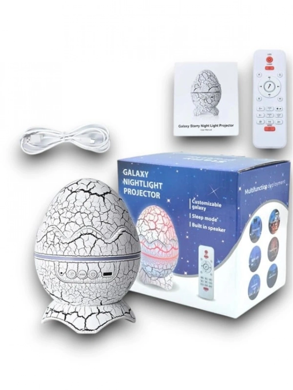 【Dinozor yumurta gece lambası projektör】 : Bulutsu'nun ve yıldız ışıklarının kombinasyonu tek başına veya kombinasyon halinde (14 renge kadar) açılabilir ve nebula akışının projeksiyonu rahatlatıcı bir atmosfer, 4 hız ve parlaklık yaratır. Yüksek çözünürlüklü yıldızlı galaksi duvar ve tavana yansıtılabilir, galakside seyahat ediyormuş gibi hissedeceksinizDinamik ritmli 【Bluetooth müzik hoparlörü/oyuncu 】 : Cihazı bir müzik çalara dönüştürmek için Bluetooth üzerinden bağladıktan sonra en sevdiğiniz müziği çalın. Işıklar müzik ritmini takip ederek yanıp sönecek ve dans edecek. Çocuklarımızla küçük bir müzik partisi açabiliriz【Beyaz gürültü projektörü Light】 19 yatıştırıcı sesler ve sıcak gece lambası dinlendirici gecelerde sizi sakinleştirecek, güzel yıldızlı gökyüzünde iyi bir şekilde düşmenize yardımcı olmak için yatmadan önce istediğiniz birini seçebilirsiniz.【Uzaktan kumanda ve otomatik kapanma zamanı】 : Renk aydınlatması, projeksiyon modu, parlaklık, hız, müzik seçimi, ses seviyesi ve zamanlayıcıyı kontrol etmenizi sağlayan bir uzaktan kumanda alırsınız. Otomatik kapanma zamanlayıcısı 1 veya 2 saate ayarlanabilir ve zamanlayıcıyı ayarlamayı unutursa, cihaz 4 saat sonra otomatik olarak kapanacaktır. Uzaktan kumanda ve otomatik zamanlayıcı kullanımı kolaydır ve belirli bir zamanda kapatmak için bir zamanlayıcı ayarlamaya çalışırken esneklik sağlar【İdeal hediye 】 : Desteğiniz için teşekkür ederiz, size kişiselleştirilmiş ve kaliteli ürünler sunmaya devam ediyoruz. Dinozor yumurtası dış tasarım, 3D renk boyama, artı serin kuzey ışıkları etkisi, sadece odanızı iyi dekore edemez ama aynı zamanda aileniz veya arkadaşlarınız için bir hediye olabilir.Paket detayları.1 * dinozor yumurtaları projektör1 * uzaktan kumanda1 * USB kablosu