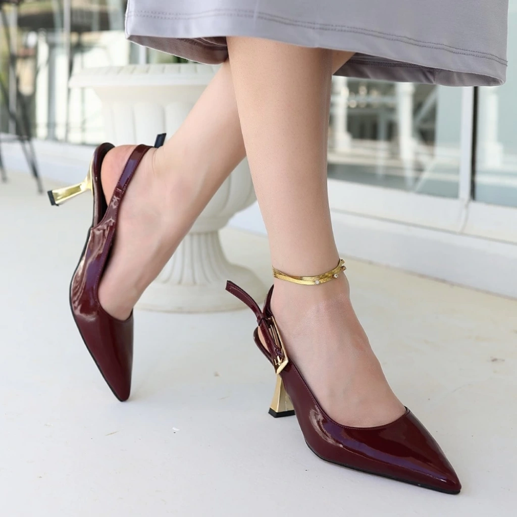 • Zalin Bordo Rugan Topuklu Ayakkabı