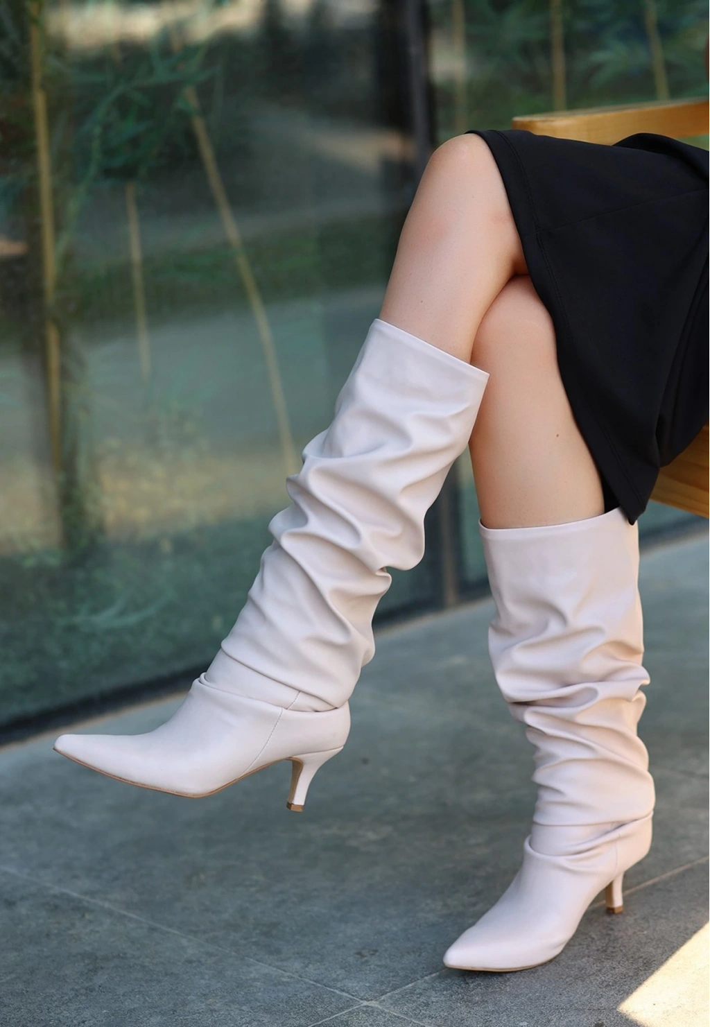Detay : Topuklu Diz Altı Körüklü Çizme