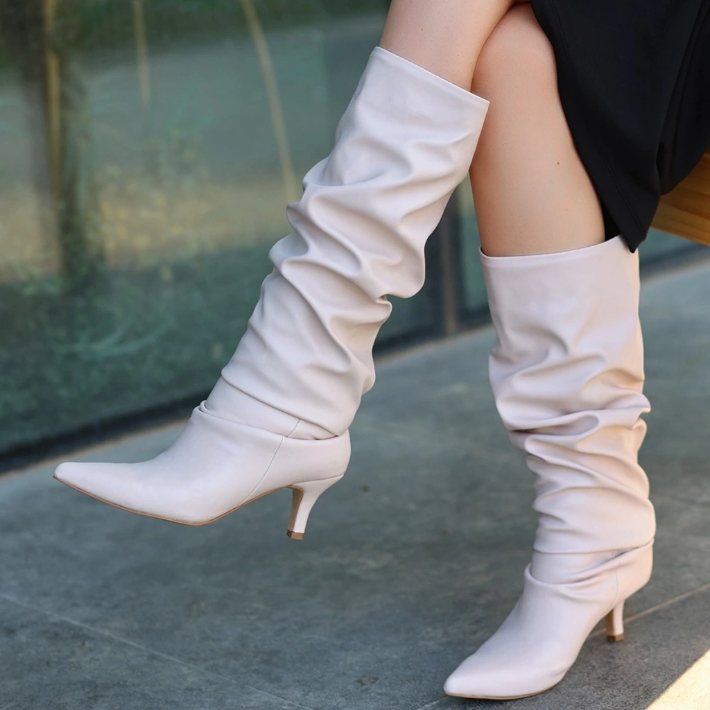Zelya Bej Cilt Topuklu Çizme